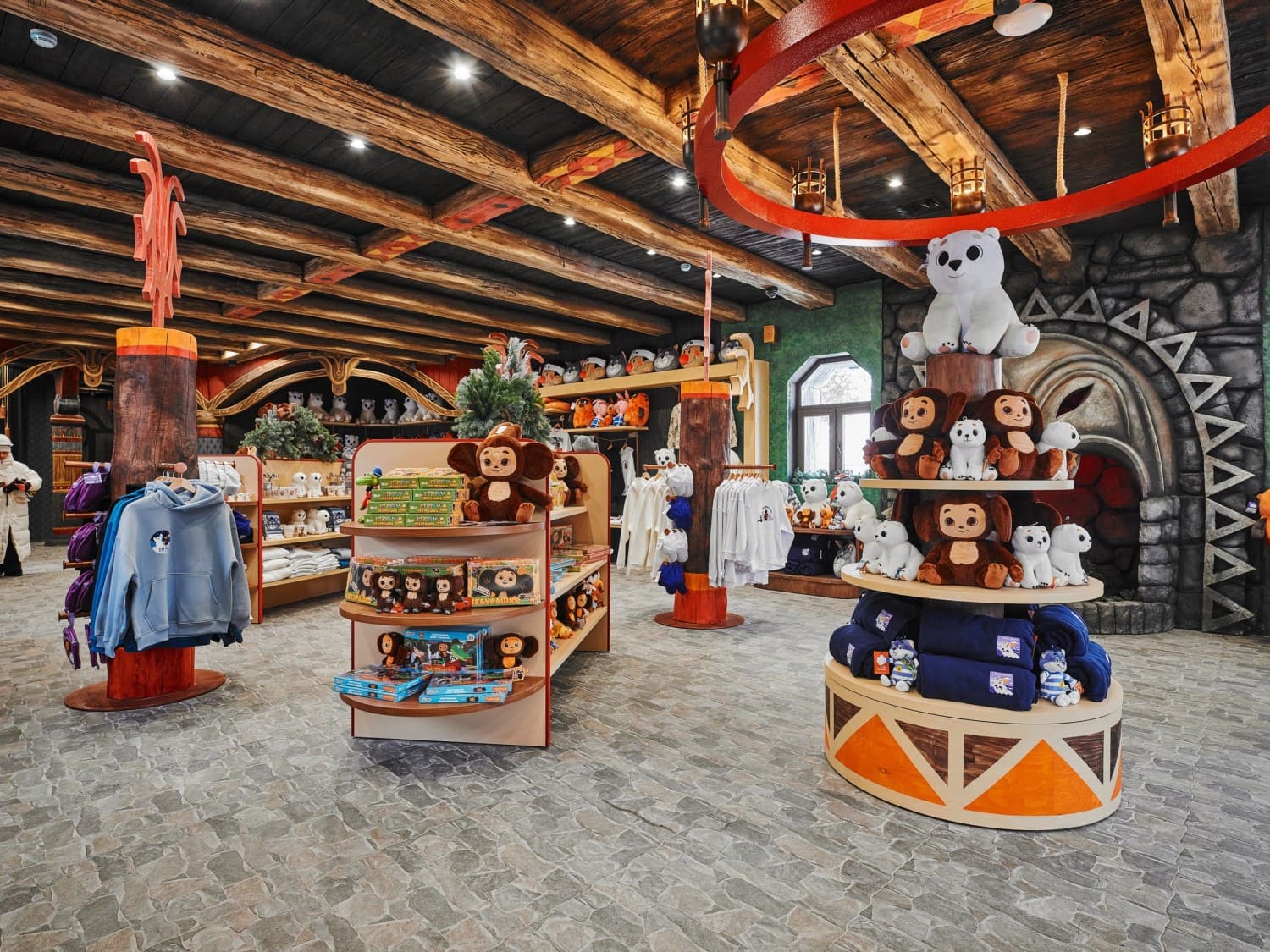 Здесь каждый может приобрести тематические сувениры от Союзмультфильма, курорта «Манжерок» и другие.