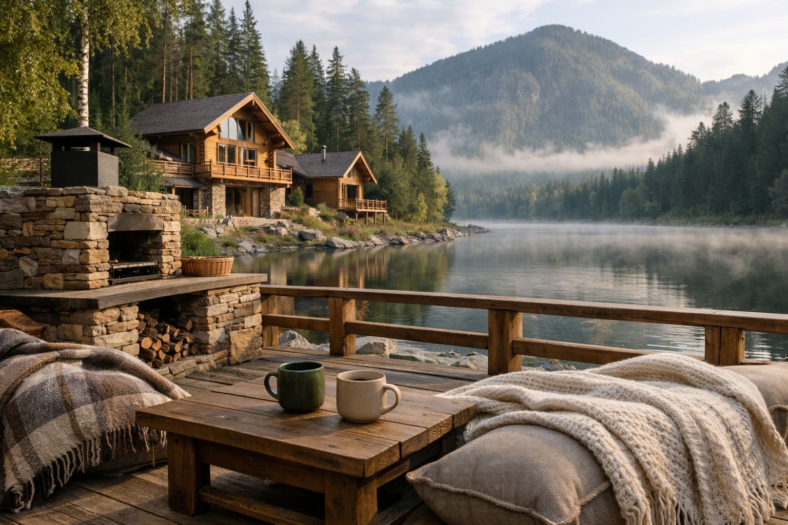 Комплекс шале, выполненных из векового сибирского кедра, предлагает идеальное сочетание комфорта, уюта и уединения среди первозданной природы.