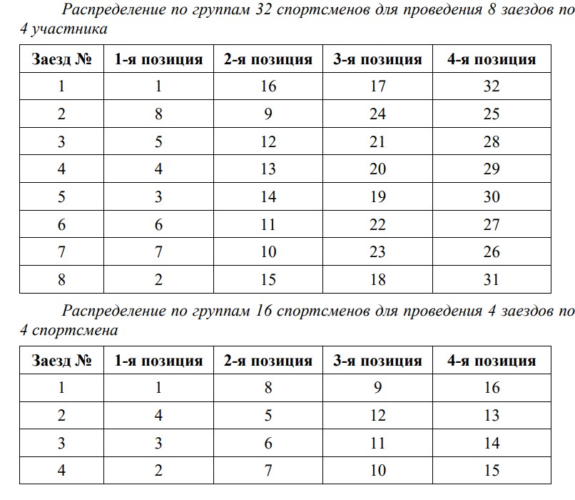 Распределение по группам для участия в финальных заездах производится следующим образом: